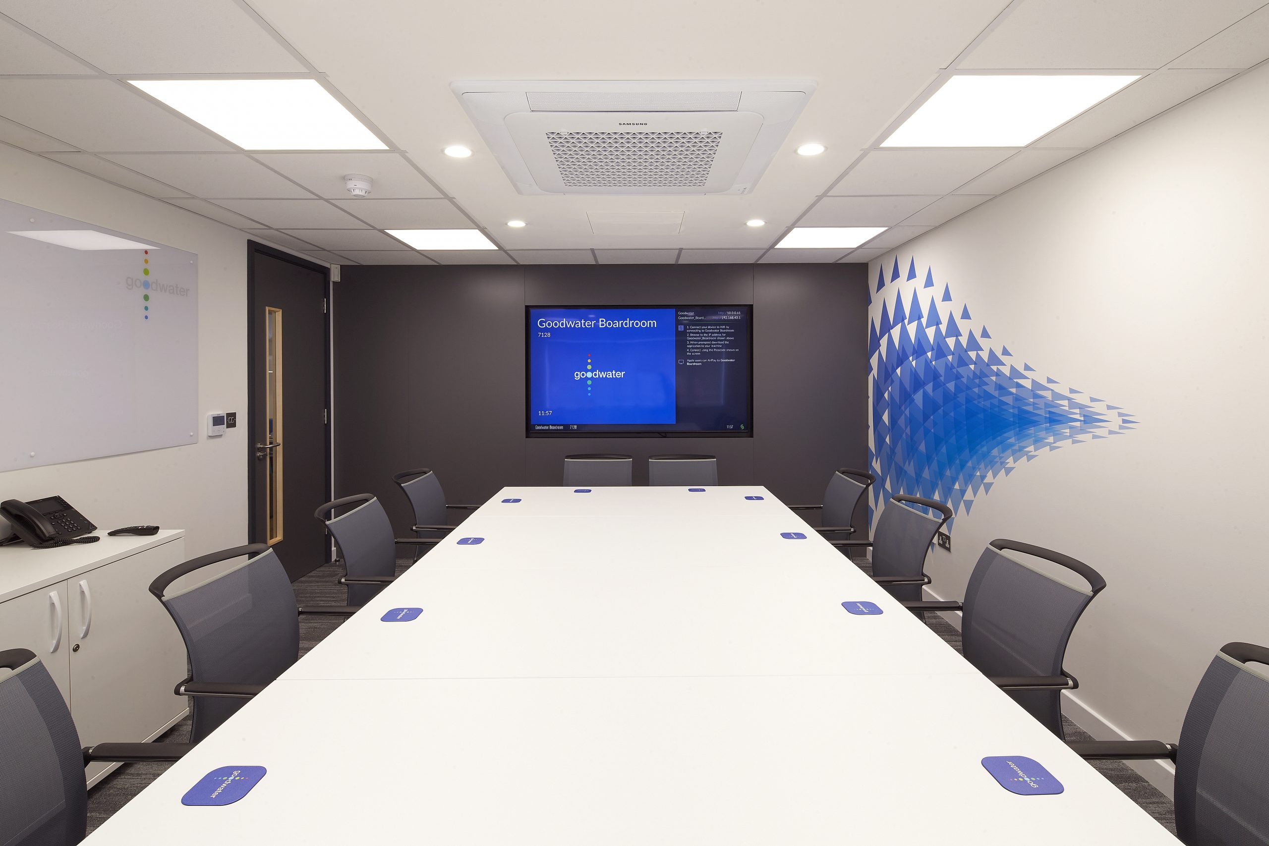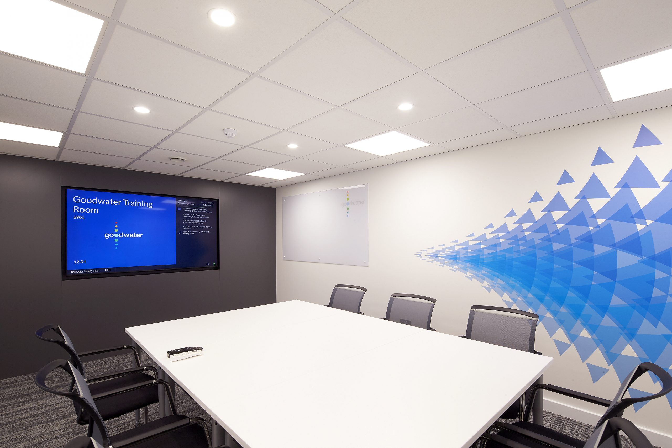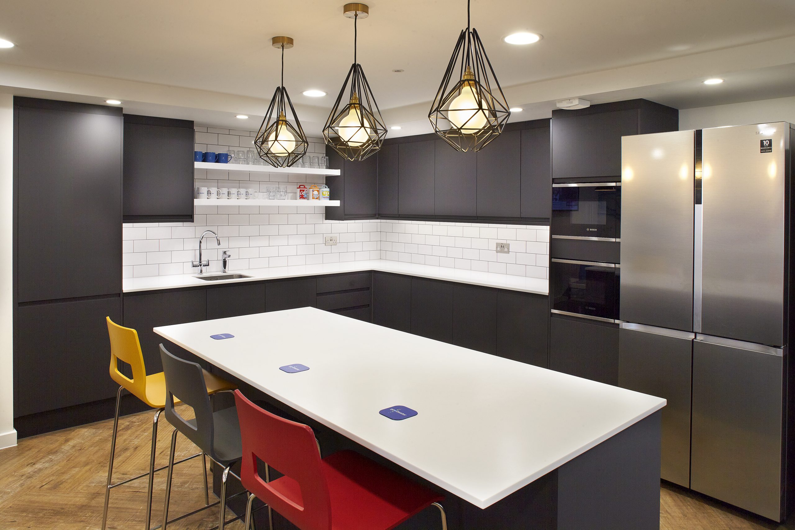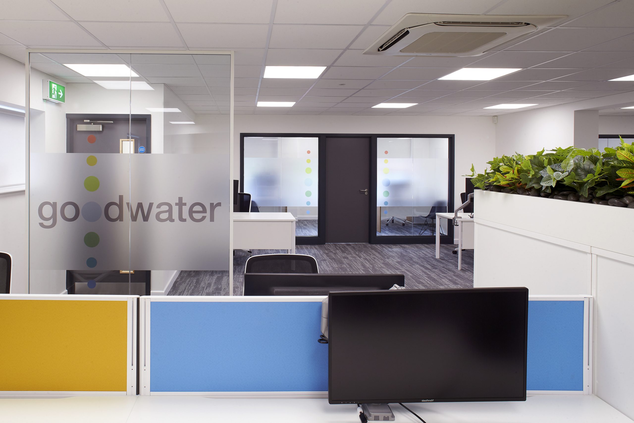 Bushcrafted assisted in the refurbishment of the two floors that make up the Goodwater head office. Featuring the bold, colourful company branding was integral to the design. We made design choices to incorporate the logo throughout the office, giving a warm welcome and inspiring aesthetic for both guests and employees. The bright colour pallet combined with striking graphics feature across both floors for a bright and inviting finish.